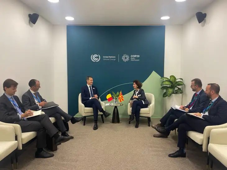 President Gordana Siljanovska Davkova met with the Prime Minister of the Kingdom of Belgium, Alexander De Croo, on the sidelines of the United Nations Climate Change Conference (COP29) in Baku, Azerbaijan.